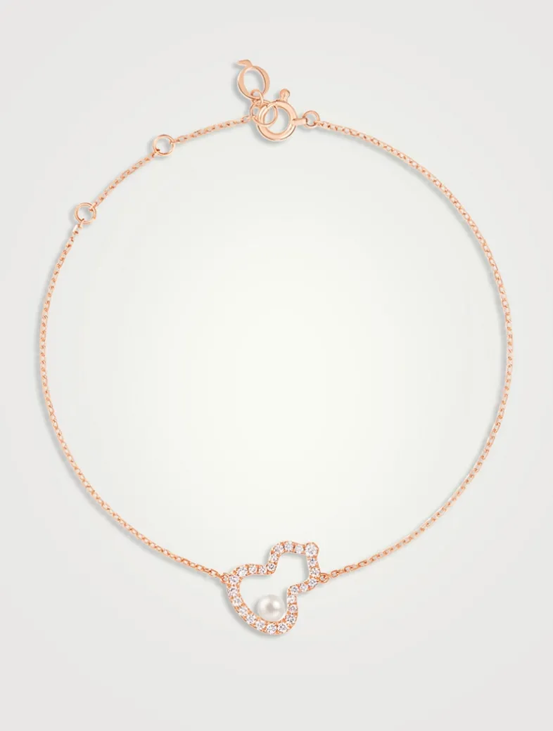 Echoing the curves of the lucky number 8, Wulu is the most powerful symbol of good fortune and positive energy in China. This adjustable chain bracelet showcases a pavé diamond version of the iconic pear-shaped pendant, punctuated with a single Akoya pearl.