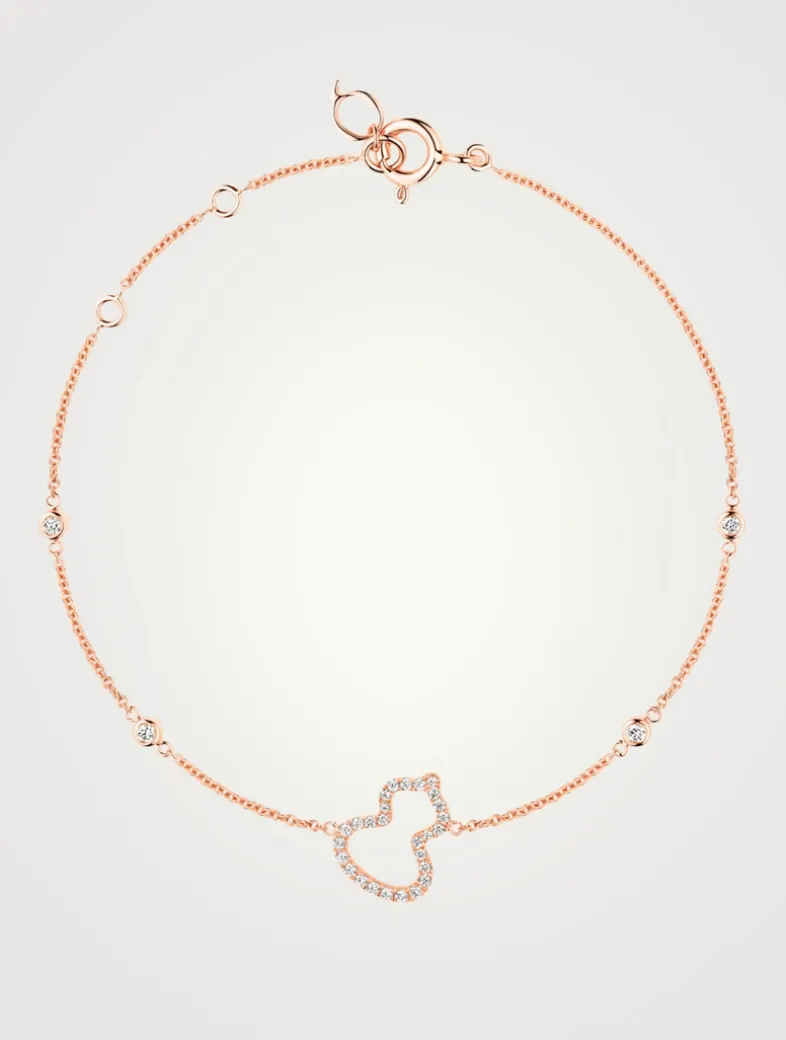 Echoing the curves of the lucky number 8, Wulu is the most powerful symbol of good fortune and positive energy in China. Set on a dainty diamond-dotted chain, this bracelet features the signature Wulu pendant framed with 32 diamonds.
