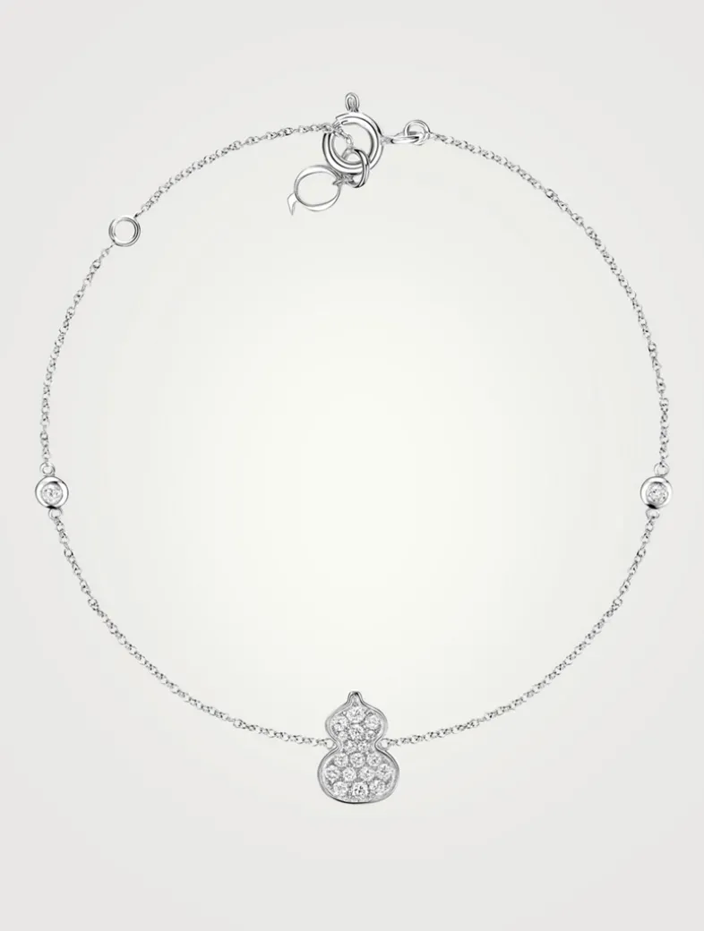 Chain bracelet embellished with pavé pear-shaped charm and bezel-set diamonds.