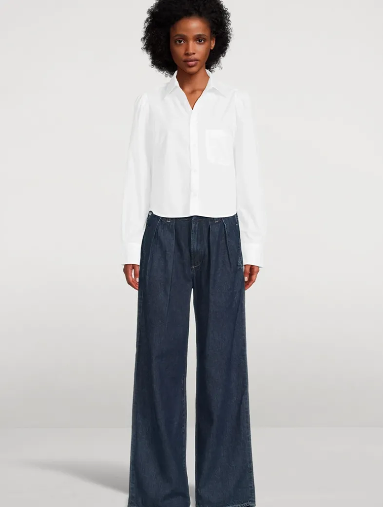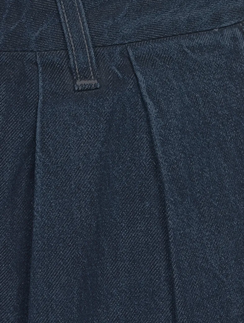 Crafted from a rigid recycled cotton blend with a vintage hand feel, these denim trousers are designed with expertly placed pleats and a relaxed fit.