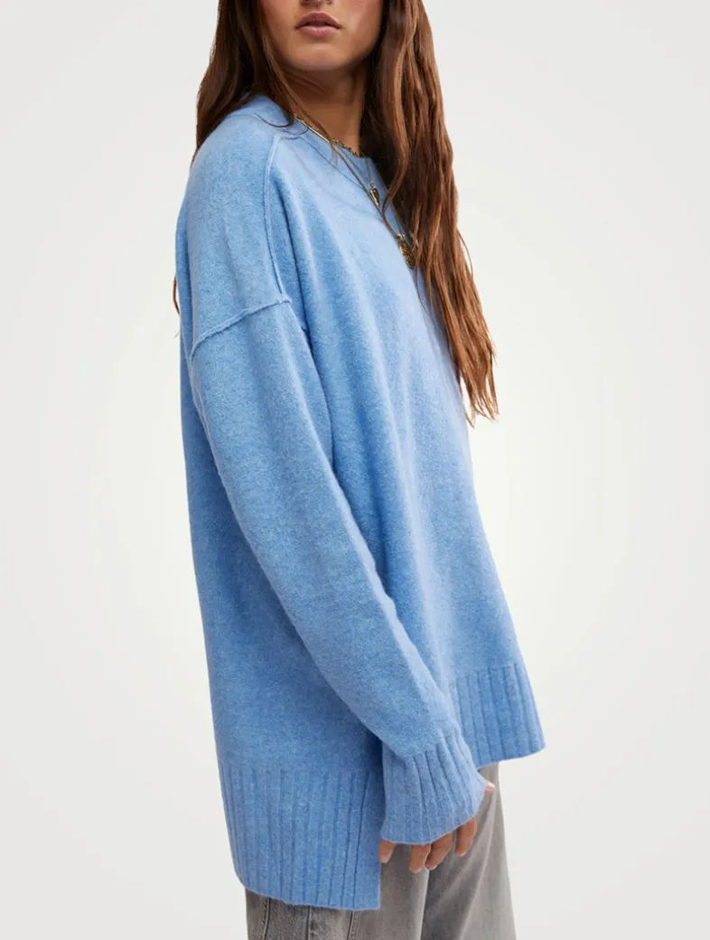 An essential addition to your sweater collection, this pullover is featured in the softest knit fabrication and easy, oversized style with contrasting ribbed panels and side slit details.