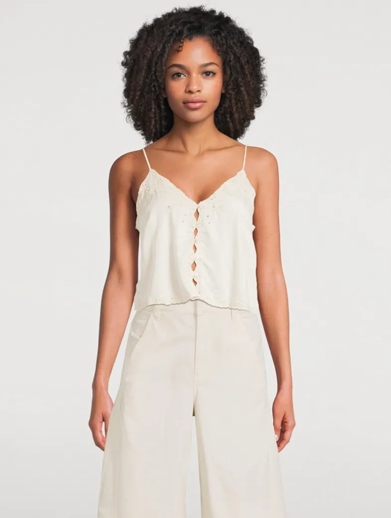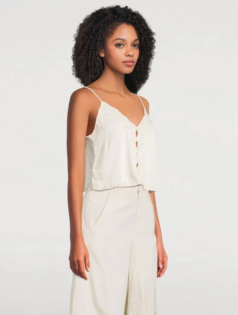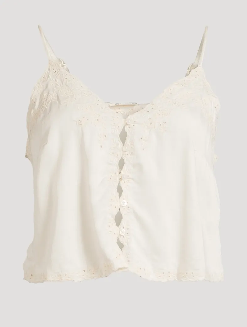 Nodding to boho styles, this flowy cami by Intimately features delicate embroidered trim. It has adjustable straps to ensure the perfect fit.