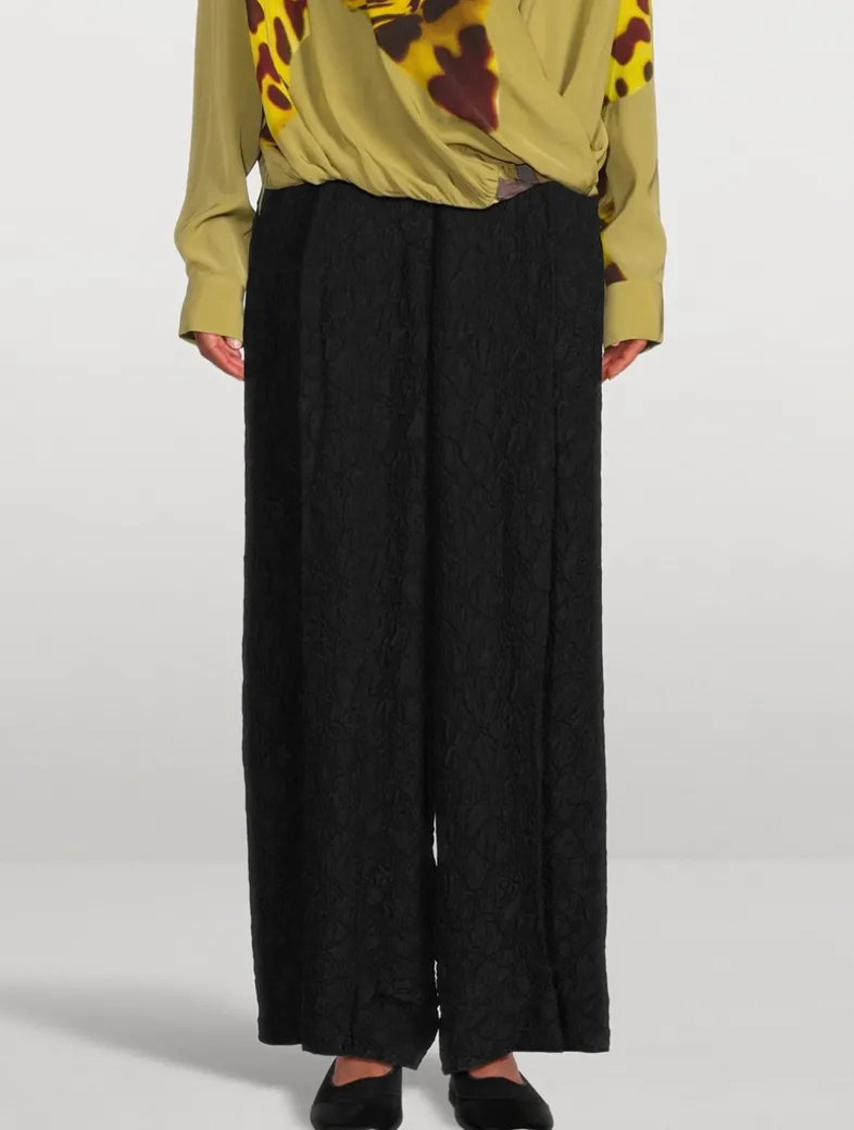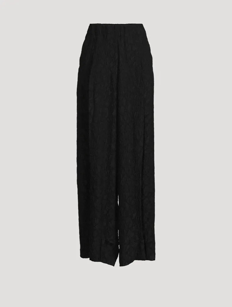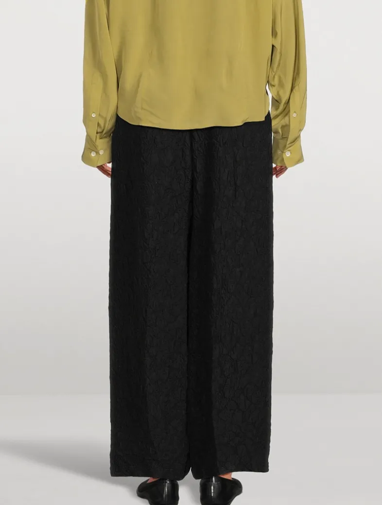 These slouchy-meets-chic trousers are cut in an oversized, wide-leg silhouette, giving them a borrowed-from-the-boys feel. The silk-blend pair are crafted of a luxurious crinkled fabric and topped with an elastic waistband.