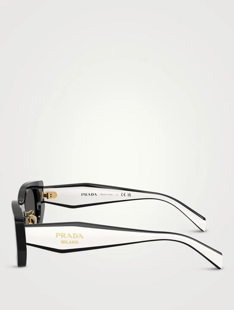 Offering a perfect blend of style and comfort, these sunglasses showcase a striking geometric design with a pillow frame, and feature the Prada Milano logo elegantly displayed on the temples. This style is RX-able.