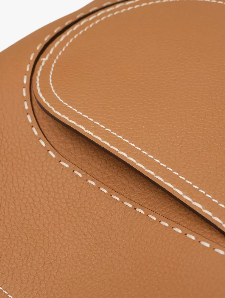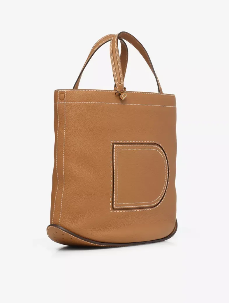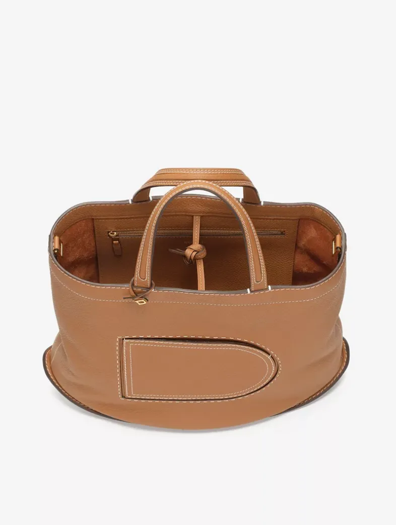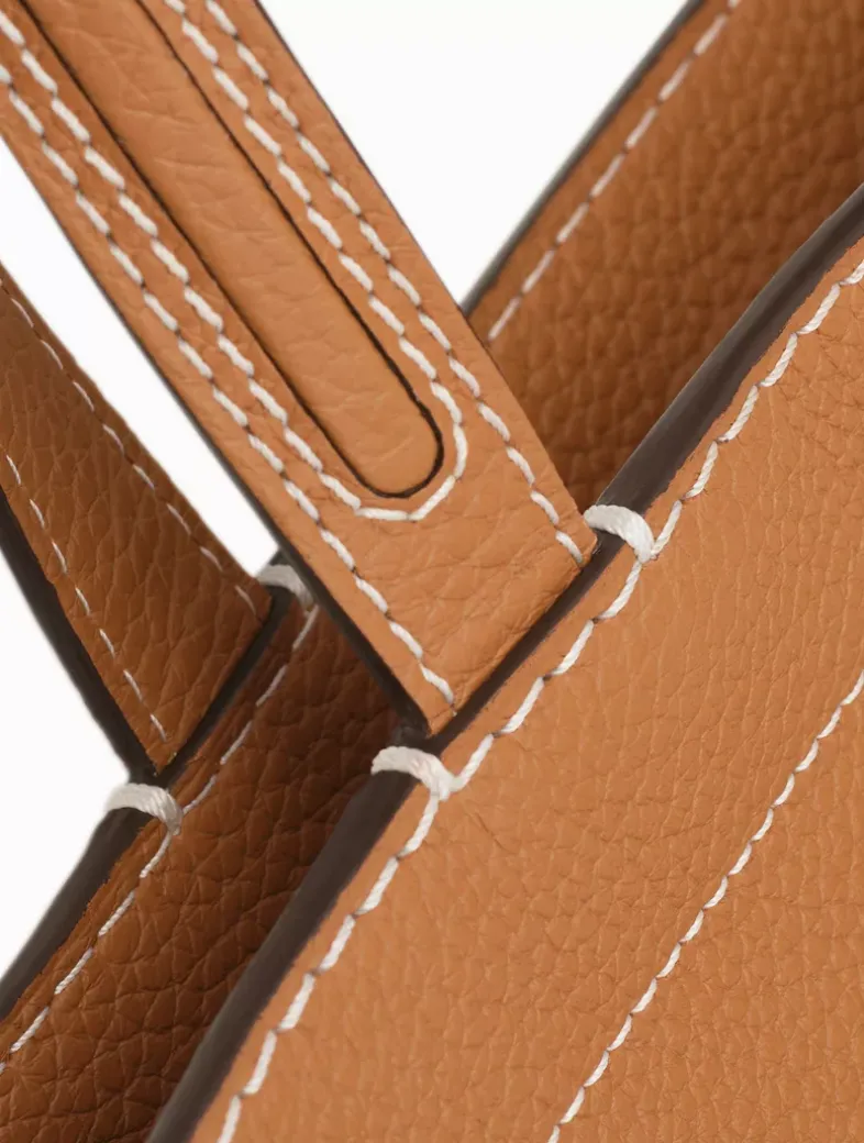 The largest member of the Pin family, the Pin Cabas carries with it a 1970’s youthful spirit while remaining roomy and functional. Crafted from Taurillon Soft leather in natural Vegetal with gold metal hardware, contrasted Ivory stitching highlights the Pin’s emblematic front pocket. With a detachable shoulder strap, it can be held by its handles or worn over the shoulder. Its signature rounded perforated bottom gives the bag its perfect swinging curves, while its spacious interior makes it ideal for business and travel.