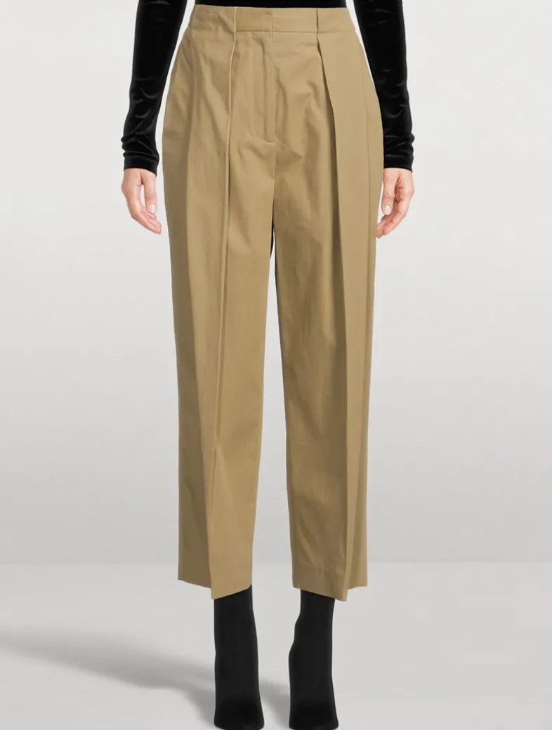 A menswear-inspired take on a classic style, these high-waisted cotton trousers have a slouchy, wide-leg silhouette with front pleats. Finished with two slash side pockets and two welt pockets on the back.