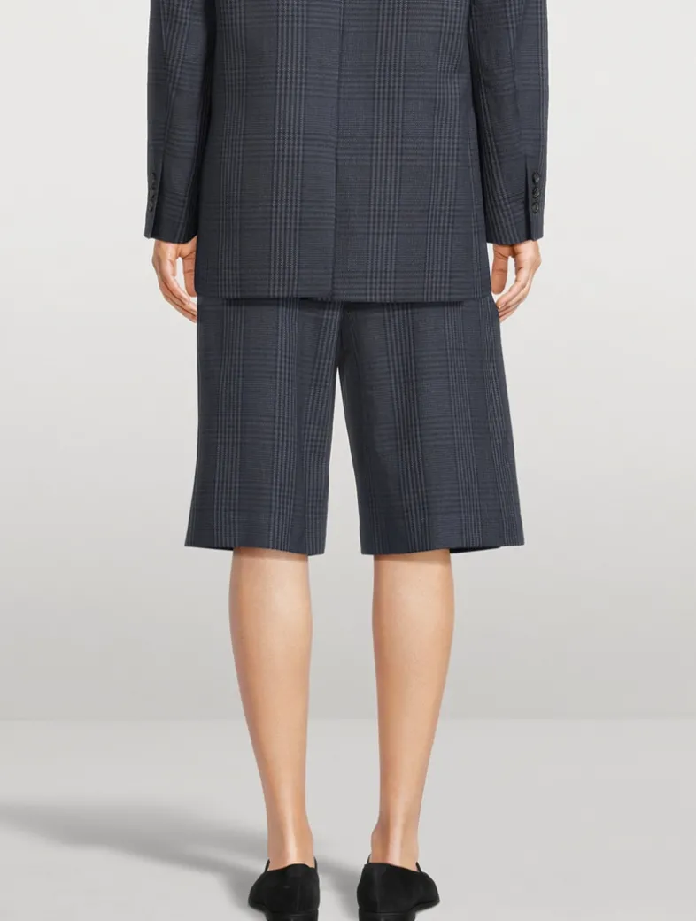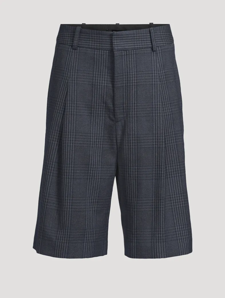 Cut to a low rise, this new walking short is a louche silhouette featuring pleats, trouser pockets, and a wide-leg opening. Crafted from linen with a classic glen check motif.
