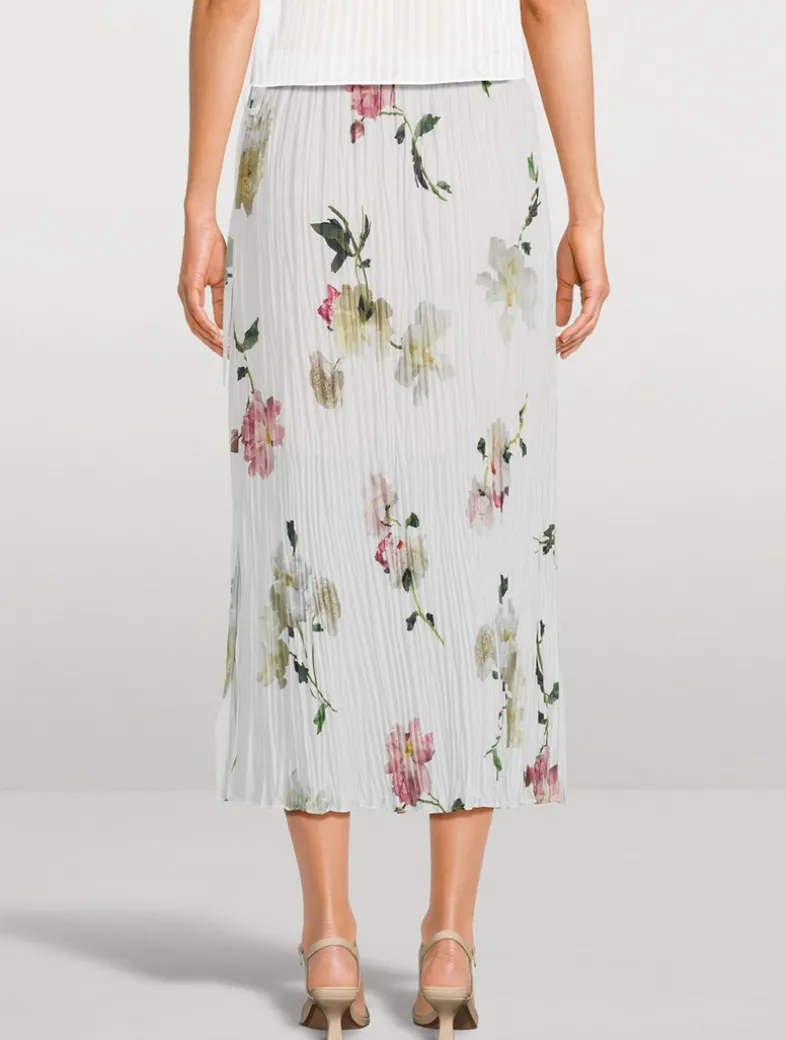 A bouquet in the Vince studio planted the seeds for this side-tie midi skirt. The bunch was photographed and printed atop lightweight crêpe de Chine, finished with a crushed texture for added dimension.