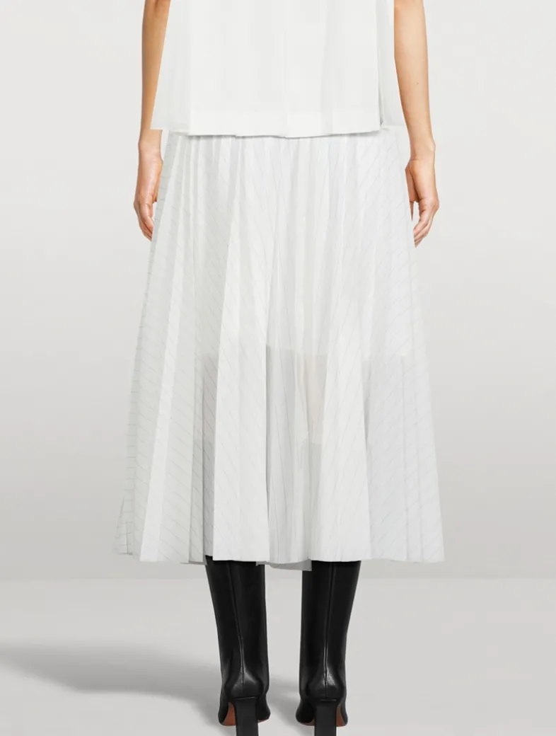 Constructed with a pleated finish and partial lining, this fluttering organza skirt is printed with delicate stripes. Made in Japan, the midi is cut to an A-line silhouette and topped with a contrasting fabric belt.