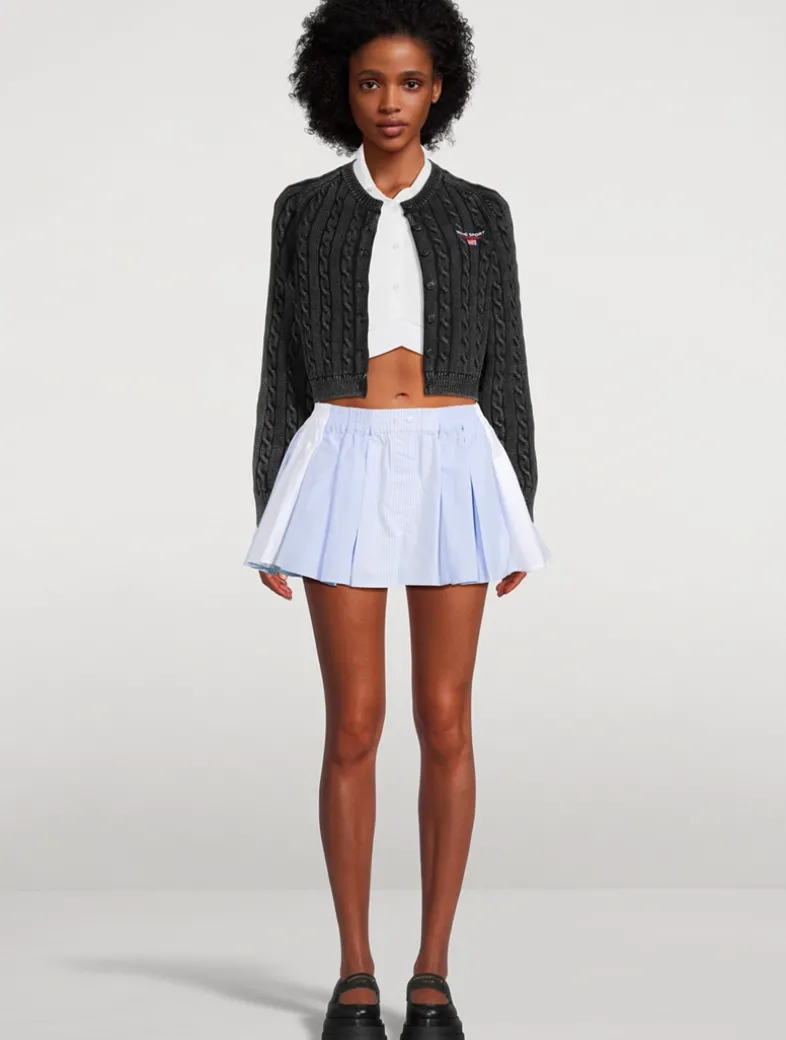 These boxer shorts are crafted of heavy cotton oxford with a patchwork design, allowing for versatile wear. A pleated waistband creates added volume. Logo embroidery at the hem, contrast stripes, and a faux fly front complete this leisure-to-casualwear style.