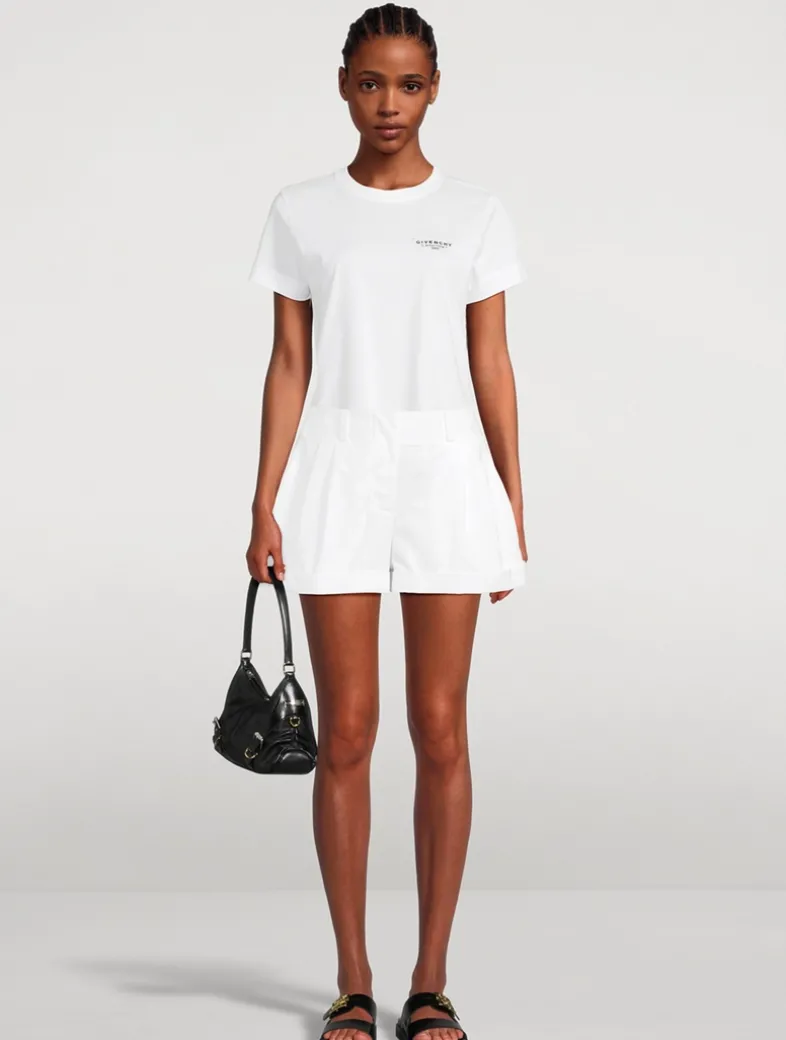 A lightweight cotton construction defines these pleated poplin shorts. The waistband has an elastic back and belt loops, while the wide legs are finished with cuffed hems.