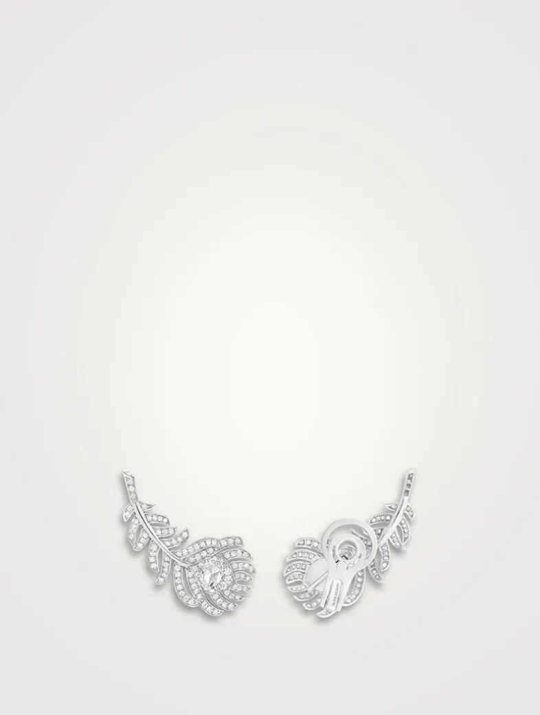 Plume De Paon White Gold Clip-On Earrings With Diamonds