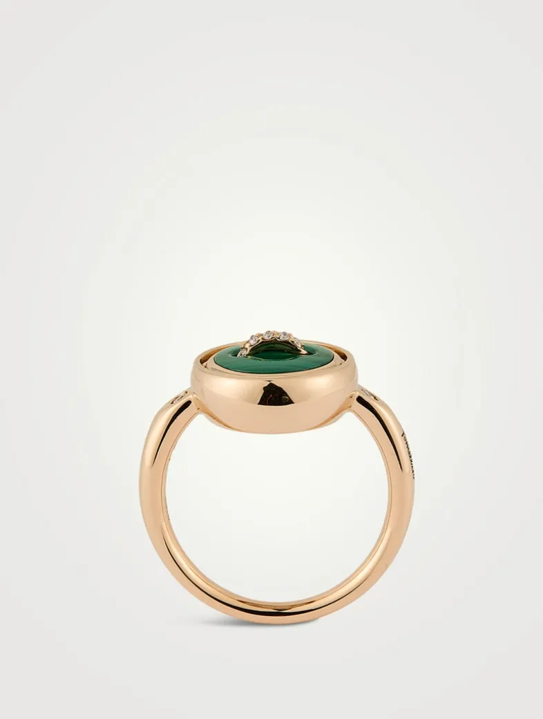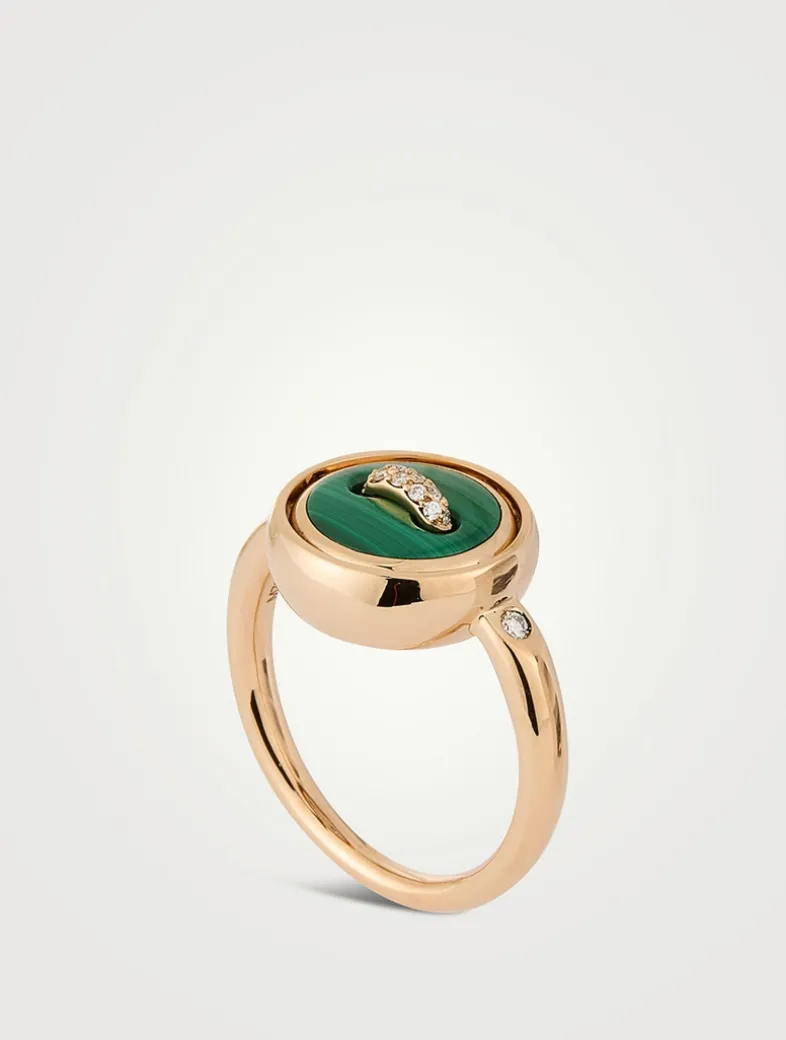 Pom Pom Dot 18K Rose Gold Reversible Malachite Ring With Diamonds