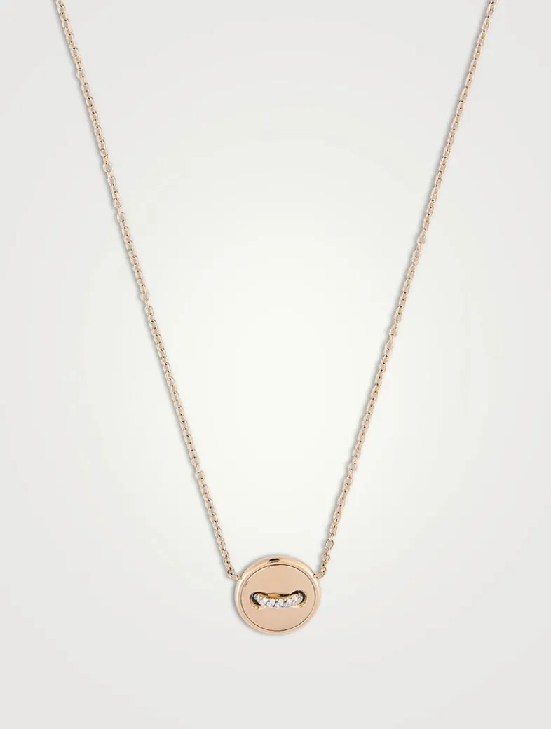 Pom Pom Dot 18K Rose Gold Reversible Pendant Necklace With Turquoise And Diamonds