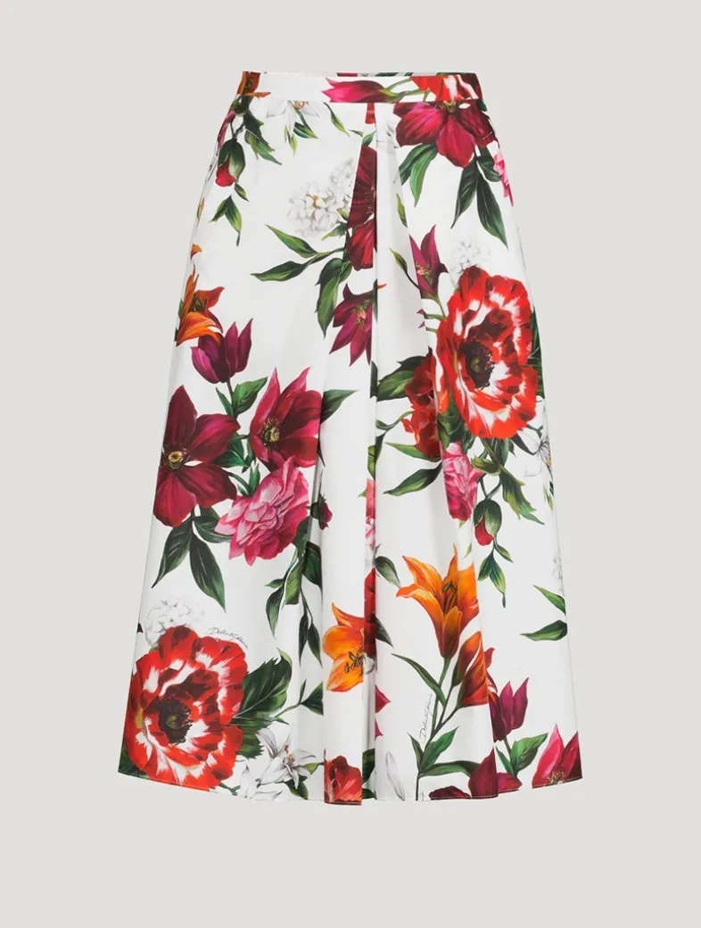 Showcasing DOLCE & GABBANA’s love for romantic motifs, this flattering A-line midi skirt is printed with large-scale florals. It is crafted of a crisp cotton poplin and has a fitted waistband with pleating and side slip pockets.