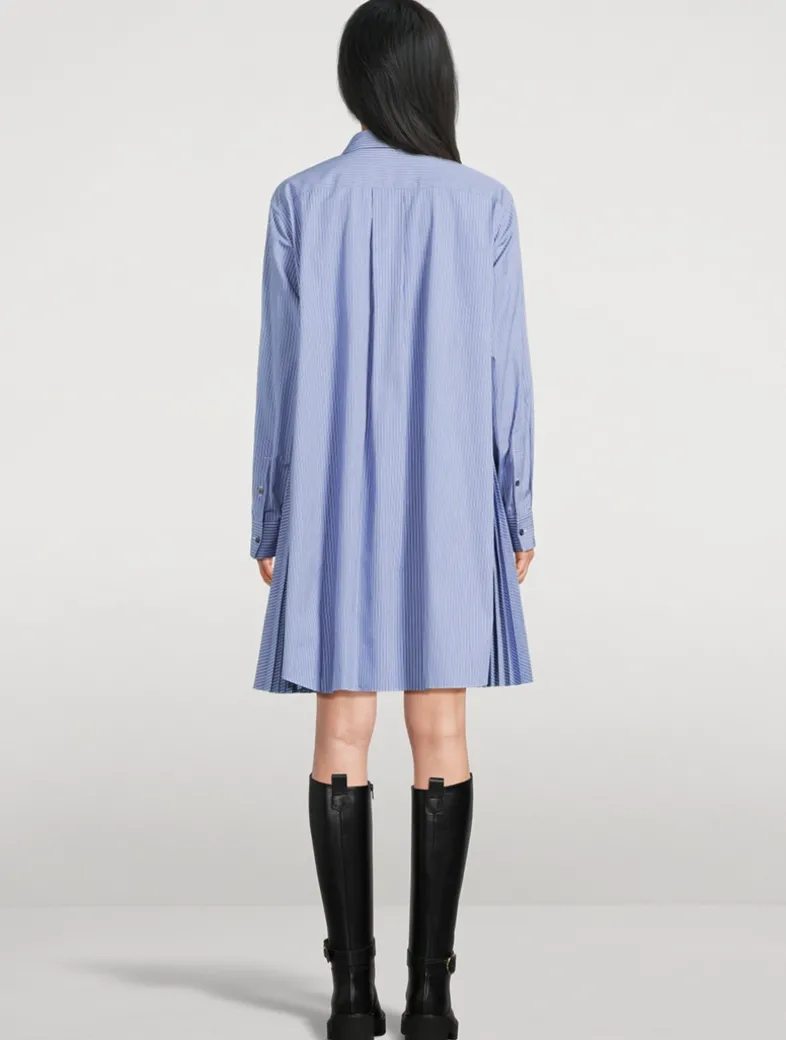 This tailored shirt dress has an A-line silhouette with pleated inserts at the side seams to further enhance its voluminous shape. Crafted from a cotton-blend poplin a pointed collar, a hidden buttoned closure, and buttoned cuffs.