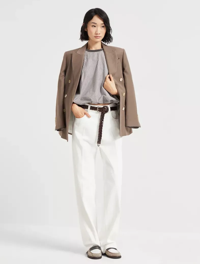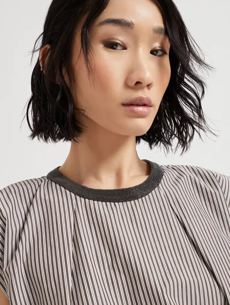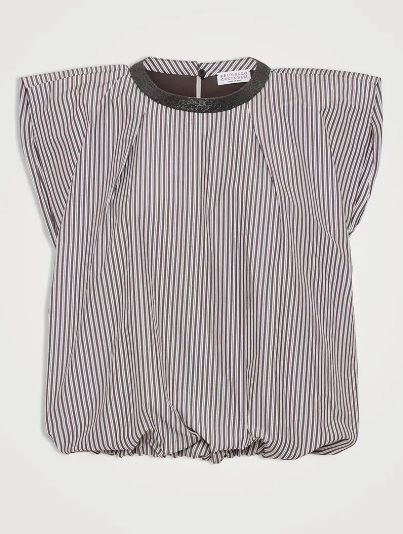 Multi-stripe poplin balloon top with precious collar
