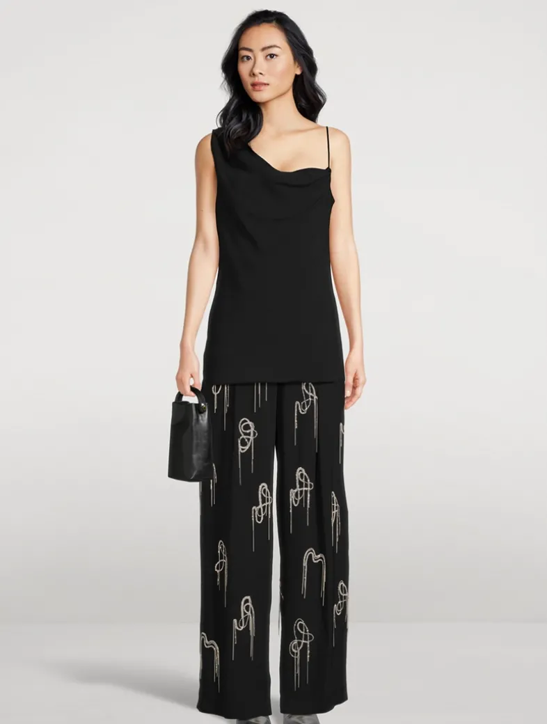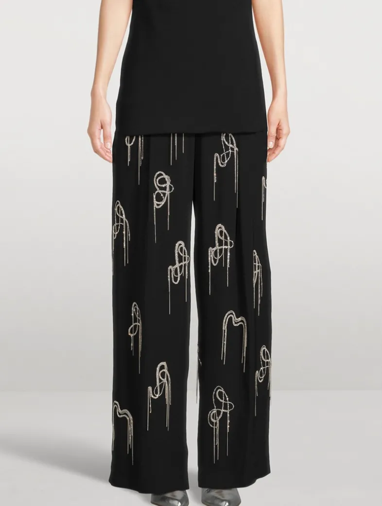Dazzling crystal beading with fringe adorns these trousers, elevating them from workwear staple to the perfect evening option. They have a fluid construction with a high-rise waistband and wide-leg silhouette.