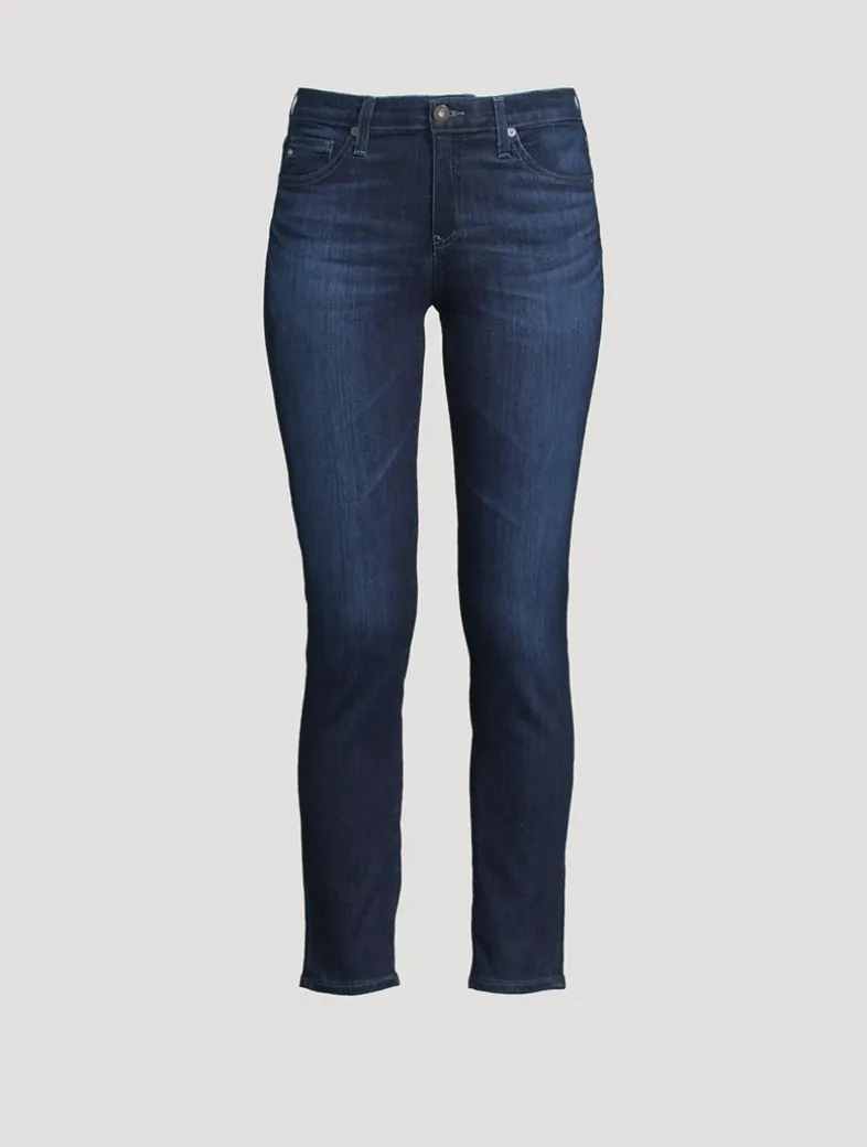 The Prima Ankle is a mid-rise cigarette jean, presented here in a gently faded wash and featuring subtle slits at the side ankle. The pair is fitted through the hips and slightly tapered at the legs, finishing with hems that land at the ankle. Designed in 9.5 oz. Premier Stretch Denim with Super Stretch—AG’s most resilient fabrication—for a luxurious feel and comfortable wear.