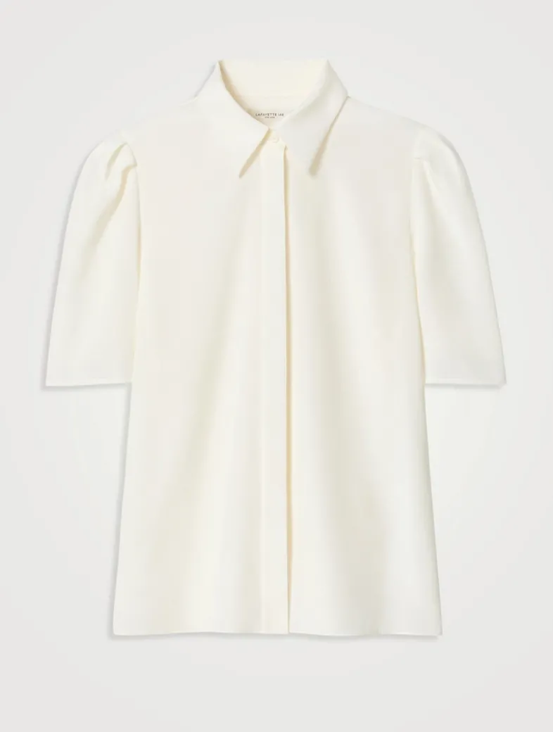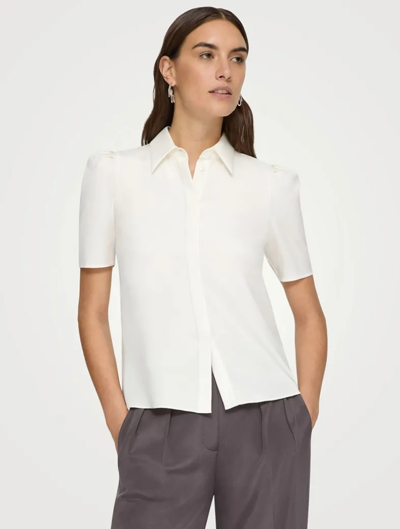 The tailored look of this shirt is offset by soft puffed sleeves. Cut in a relaxed silhouette, it has a pointed collar and concealed closure.