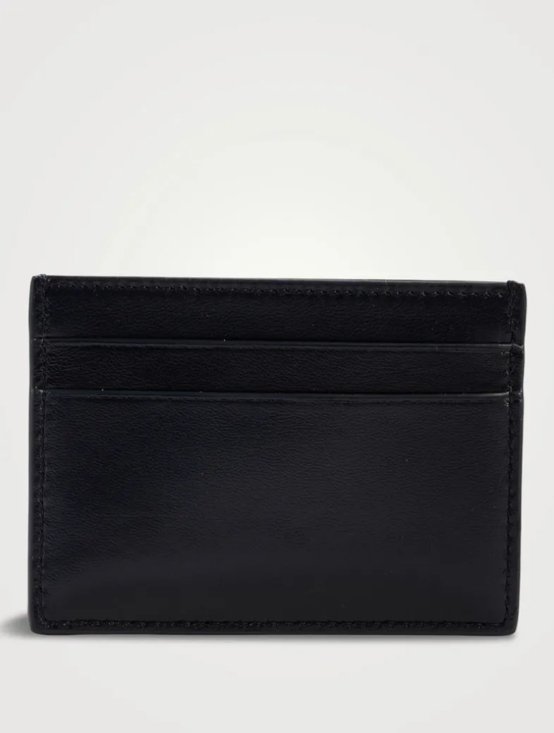 This card holder in shiny nappa calfskin is elevated with a soft padded look. It features four card slots and one central pocket.