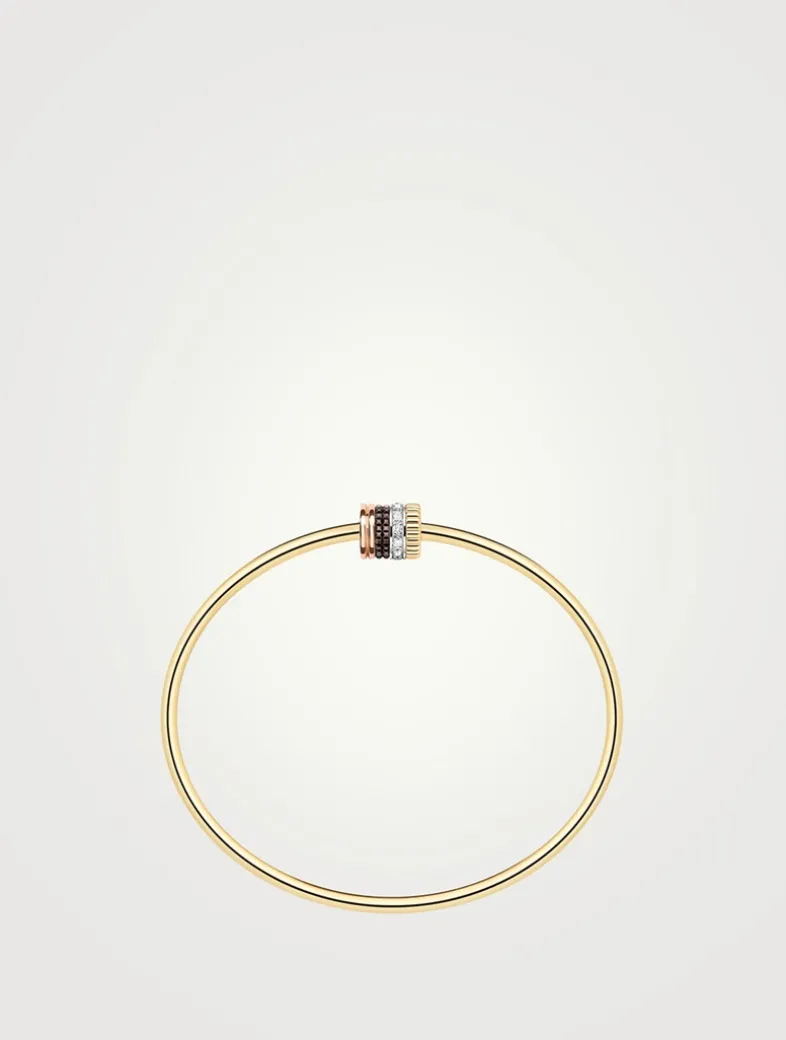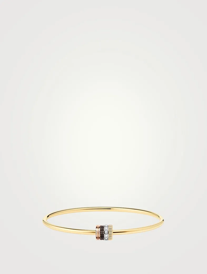 The four codes of the Quatre Classique Collection combine in pairs to form the invisible clasp of this yellow gold bracelet. A flexible yet rigid bangle to be stylishly slipped onto the wrist.