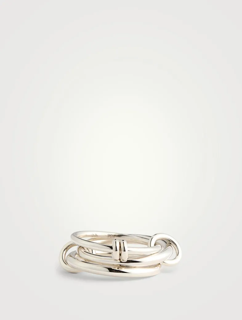 A signature stacked design, this piece features three linked rings in sterling silver with silver connectors and accents.