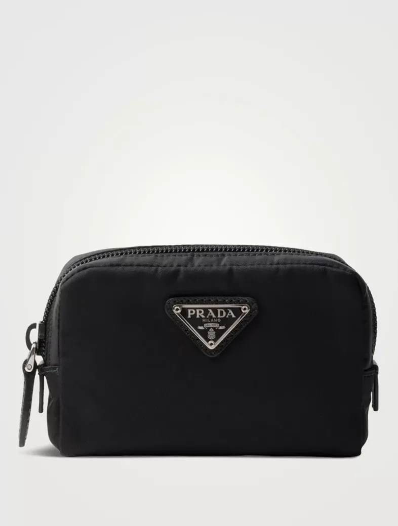 Zipper closure Enameled metal triangle logo Re-Nylon logo lining with zipper pocket
