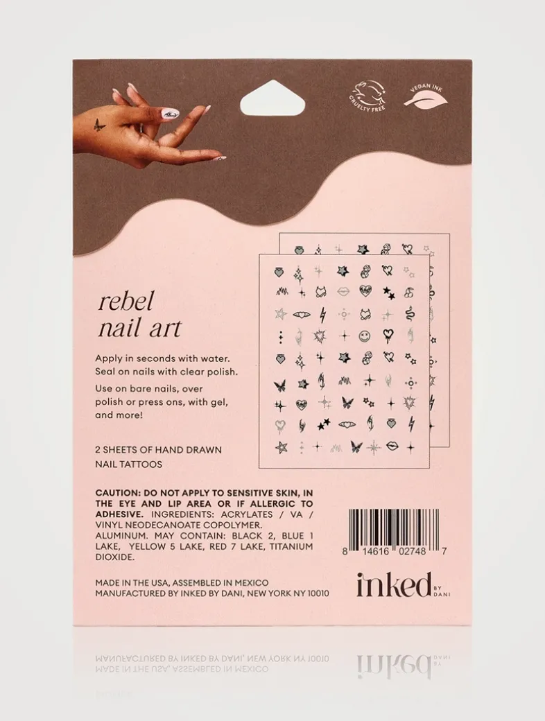 Sleek and statement-making, these chrome foil temporary tattoos add a bold touch to your nails or skin.