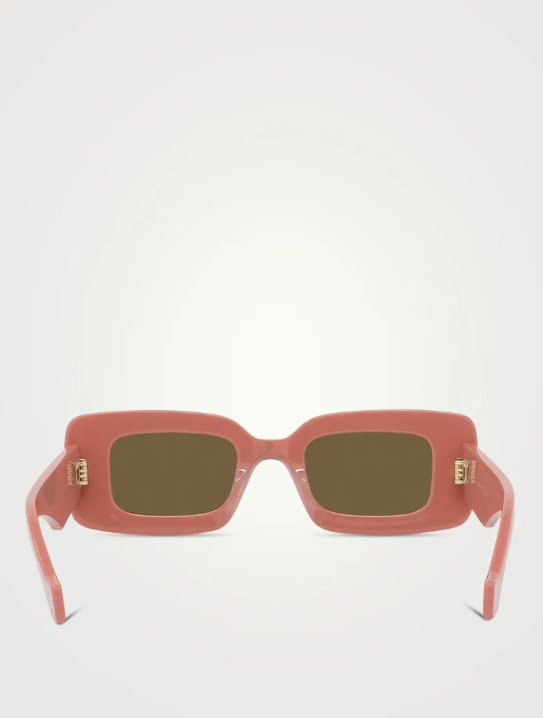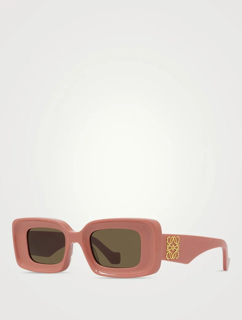 These sunglasses have a rectangular shape with a new sculpted bevelled, inspired by Paula’s Ibiza original shape and reinterpreted in an easier way. They feature LOEWE’s Anagram logo on the temples.