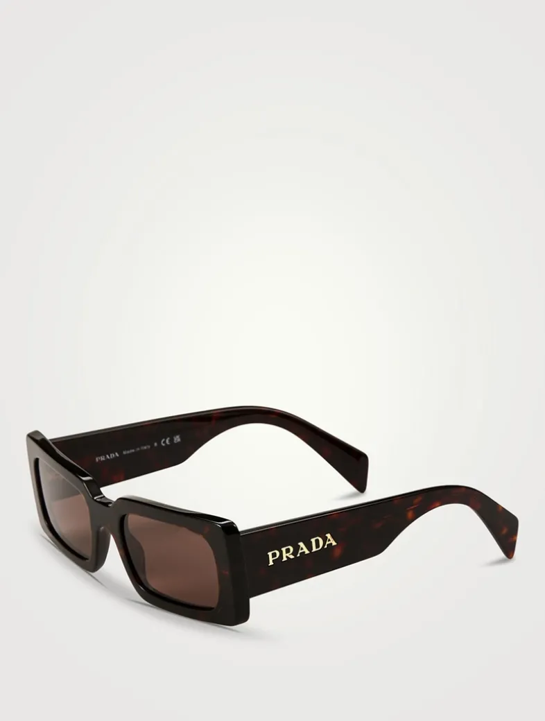 Designed with a contemporary rectangular shape, these glossy acetate sunglasses pair bold rims with chunky logo-embellished temples.