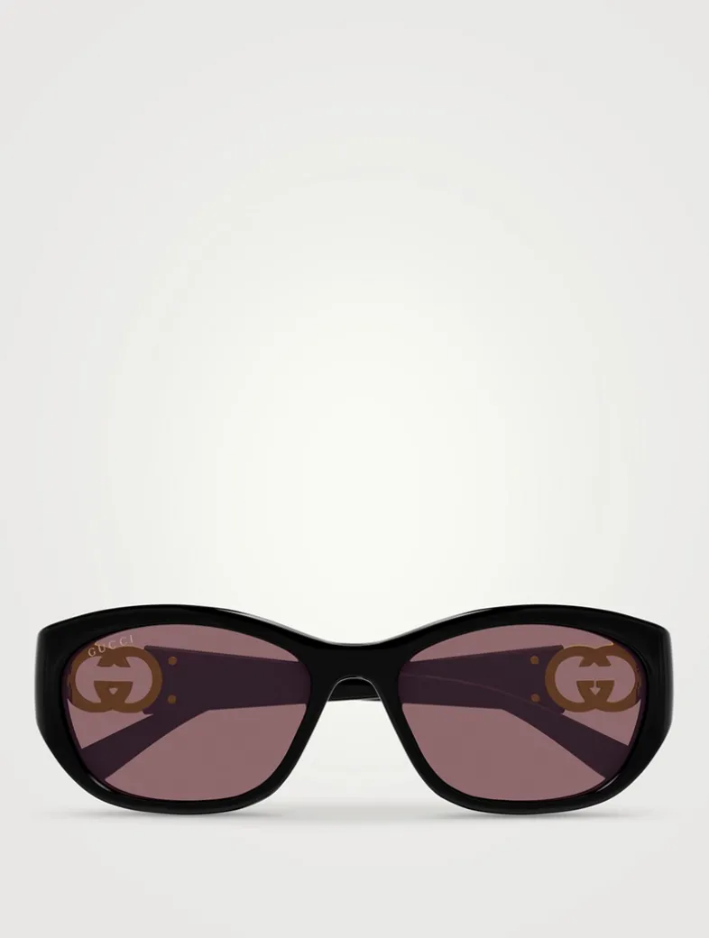 Crafted with an injection frame, this striking pair of rectangular sunglasses is defined by round Interlocking G hinges in polished metal at the temples.
