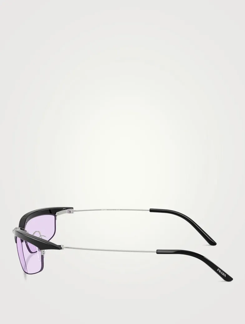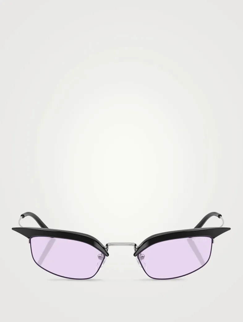 A design that was first introduced at the Prada fashion show featuring a sharp acetate bar that gives the frame a distinctive