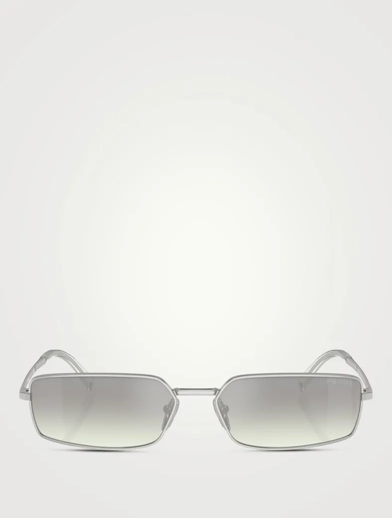 Crafted in Italy, these sunglasses boast a contemporary rectangular shape and feature metal temples embellished with acetate end tips. This style is RX-able.