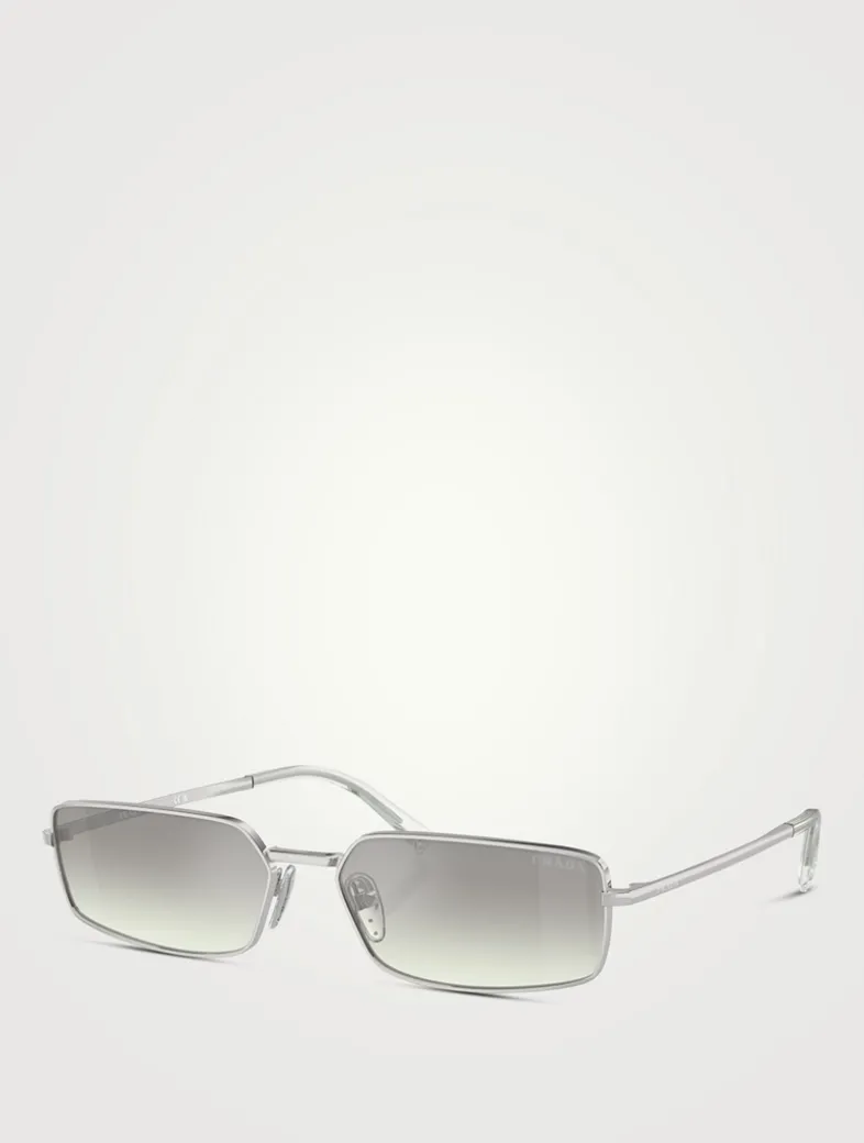 Crafted in Italy, these sunglasses boast a contemporary rectangular shape and feature metal temples embellished with acetate end tips. This style is RX-able.
