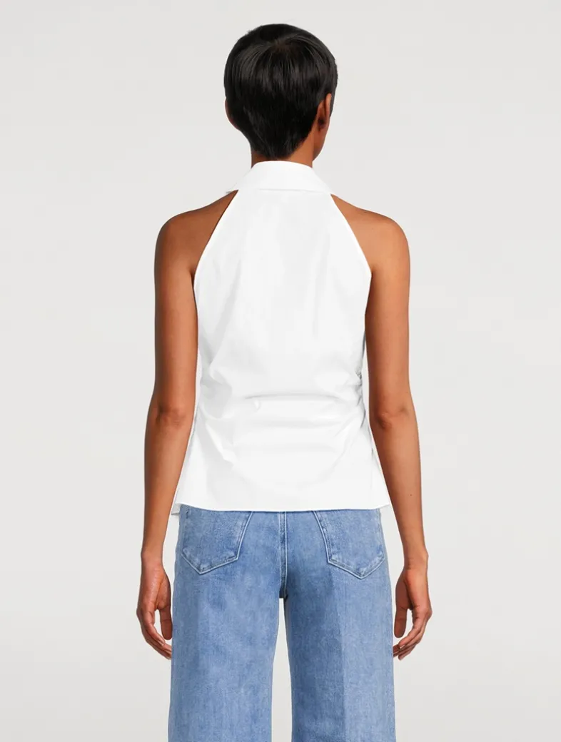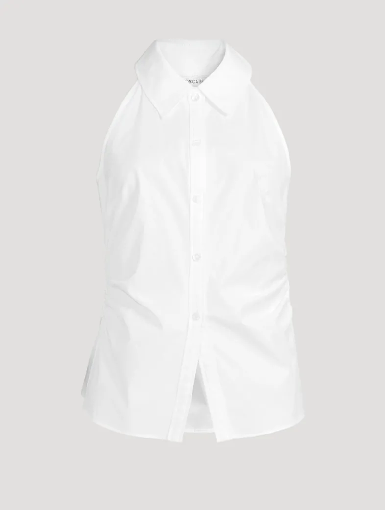 As essential, elevated. Veronica Beard reimagined the classic button-down in a sleeveless silhouette and added an exaggerated angled cutaway hem. Wear it alone or as a layering essential—this will be your new wear-anywhere go-to.