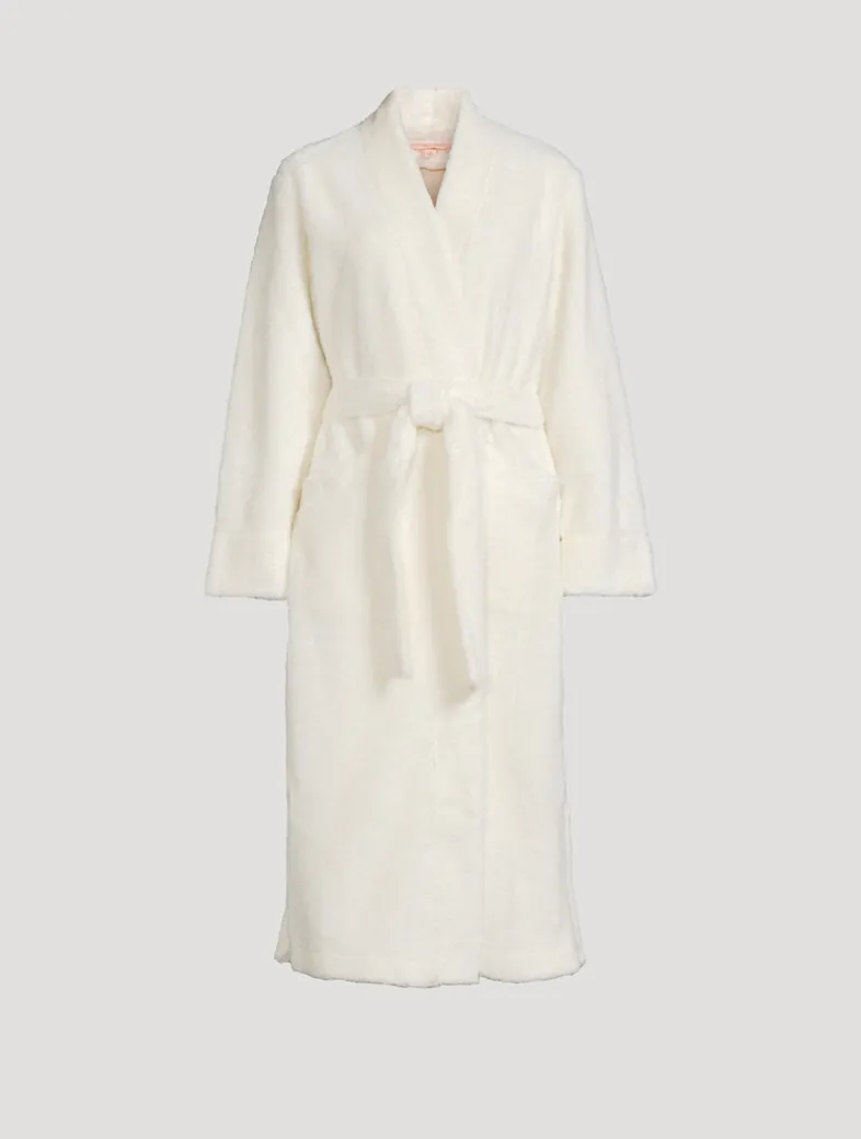 Wrap yourself in something cozy. The Renew robe features relaxed sleeves with cuffs, an inserted neck band, front pockets, a removable tie belt, and a locker loop at the back neck. Crafted from 100% recycled post-consumer polyester, this fabric is verified by OEKO-TEX® Standard 100, which means it was processed without harmful chemicals.