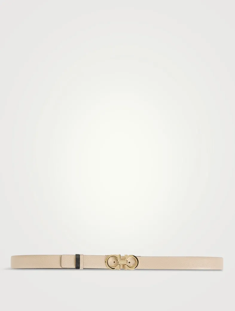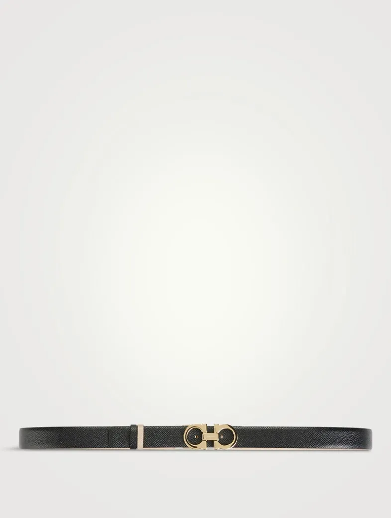 Made in Italy, this slim belt is crafted from textured calfskin leather and features a gold-tone Gancini buckle.