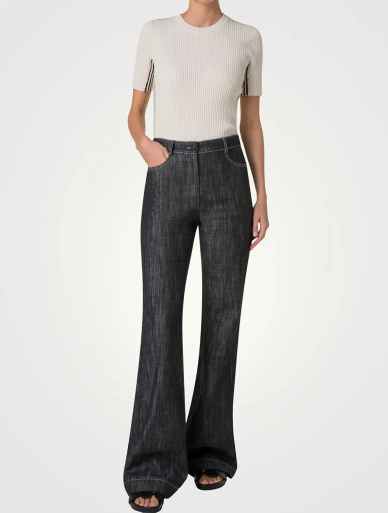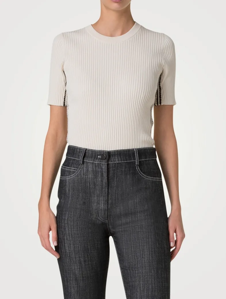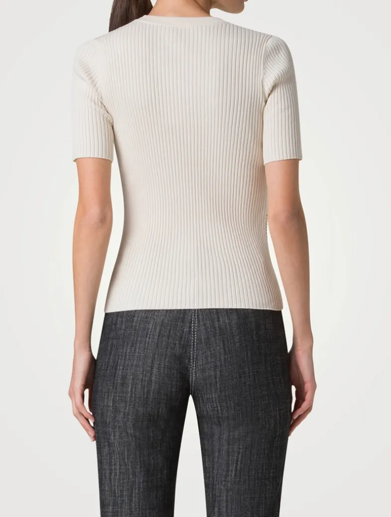 Crochet stripes at the side seams lends a sporty touch to this pullover. Crafted from a twisted cotton rib, it has a crew neckline, short sleeves, and a slim-fit silhouette.