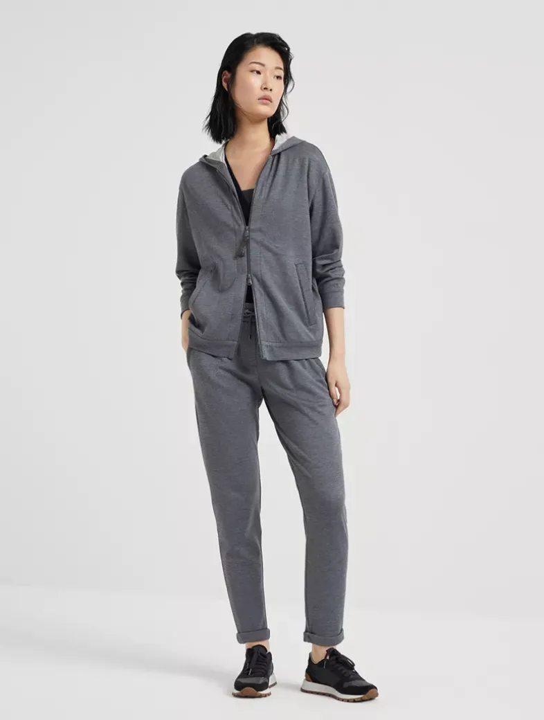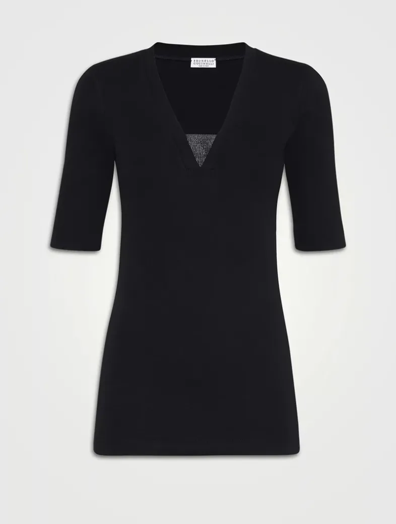 Stretch cotton ribbed jersey T-shirt with precious insert