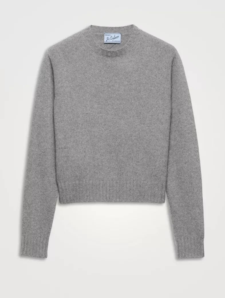 Long sleeves Ribbed knit Boxy fit Regular shoulder Knit triangle logo This garment is made from a regenerated cashmere yarn