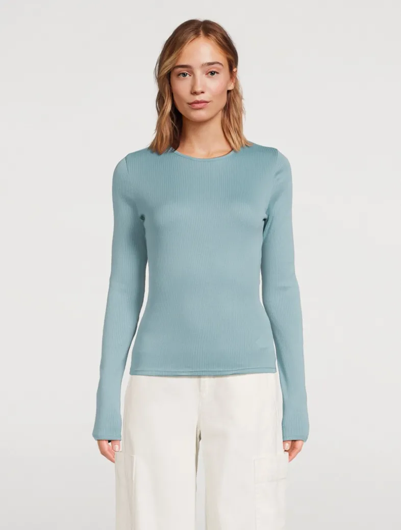 Designed with a close-to-the-skin fit, this classic long-sleeve T-shirt is crafted in exceptionally soft, ribbed Pima cotton jersey.