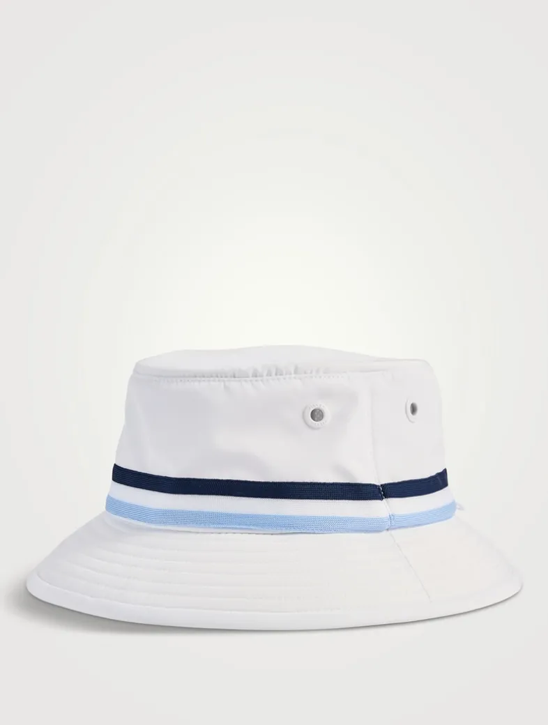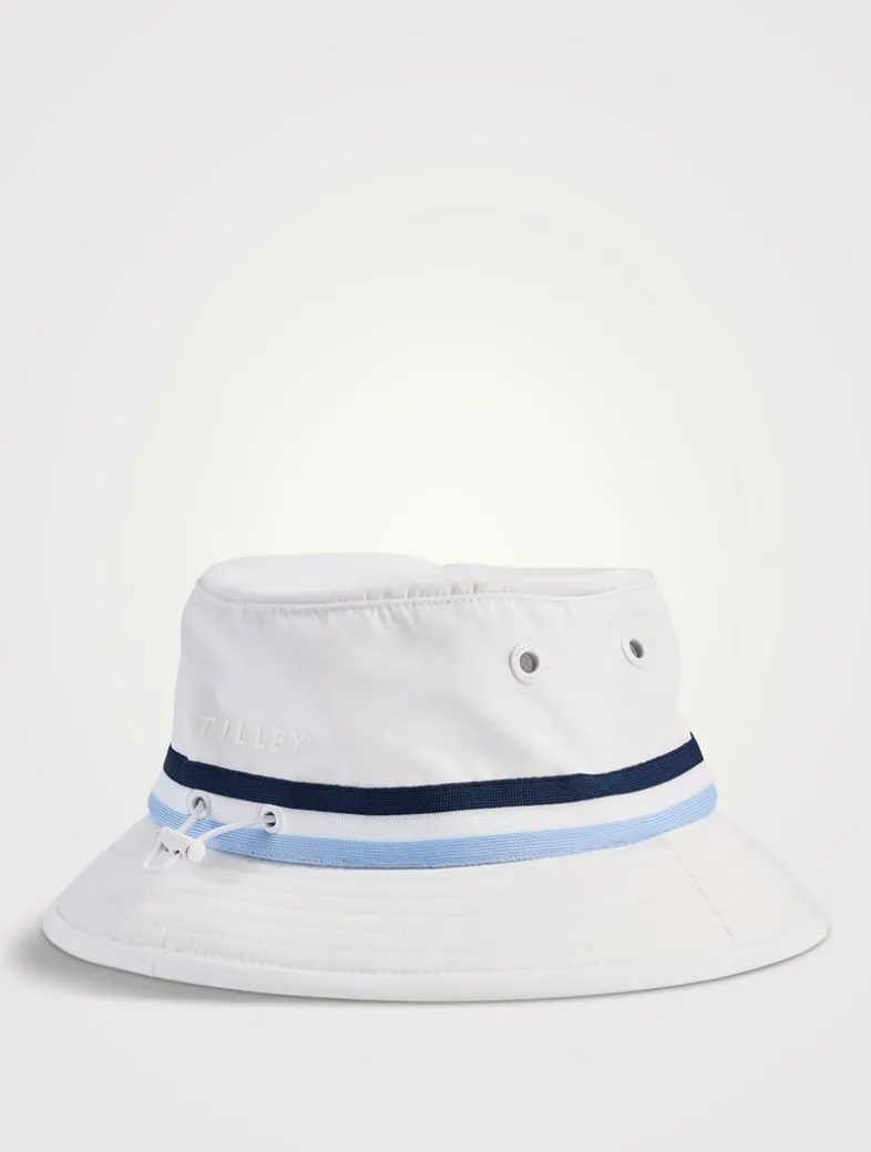 A stylish twist on the original Tilley T1, this breathable, water-repellent bucket hat features an external elastic tricolour sweatband ribbon for a comfortable, secure fit. Made from bluesign® and OEKO-TEX® certified material with a UPF 50+ rating, it’s complete with a hidden pocket, a magnet for your ball marker, and ventilation grommets for added airflow.