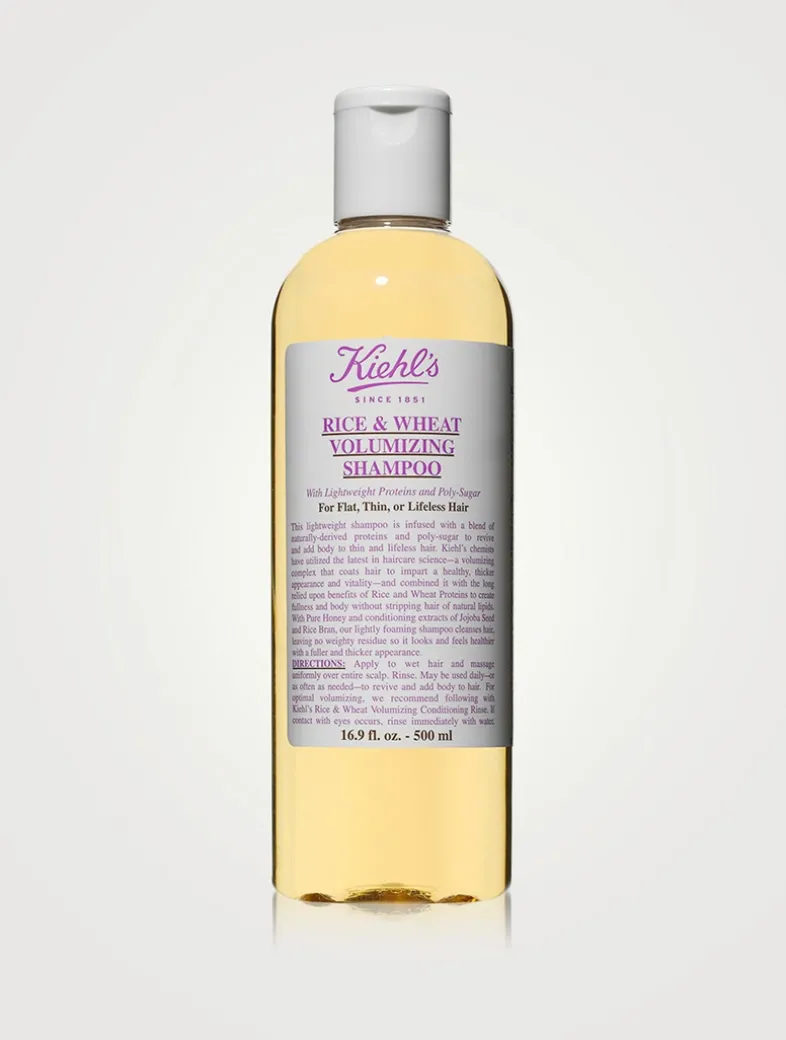 Kiehl’s Rice and Wheat Volumizing Shampoo is a lightweight shampoo infused with a blend of naturally-derived proteins and poly-sugar, to revive and add body to thin and lifeless hair. Kiehl’s chemists have utilized the latest in haircare science — a volumizing complex that coats hair to impart a healthy, thicker appearance and vitality — and combined it with the long relied-upon benefits of Rice and Wheat Proteins to create fullness and body without stripping hair of natural lipids. With pure Honey and conditioning extracts of Jojoba Seed and Rice Bran, Kiehl’s lightly foaming shampoo cleanses hair leaving no weighty residue so it looks and feels healthier with a fuller and thicker appearance.