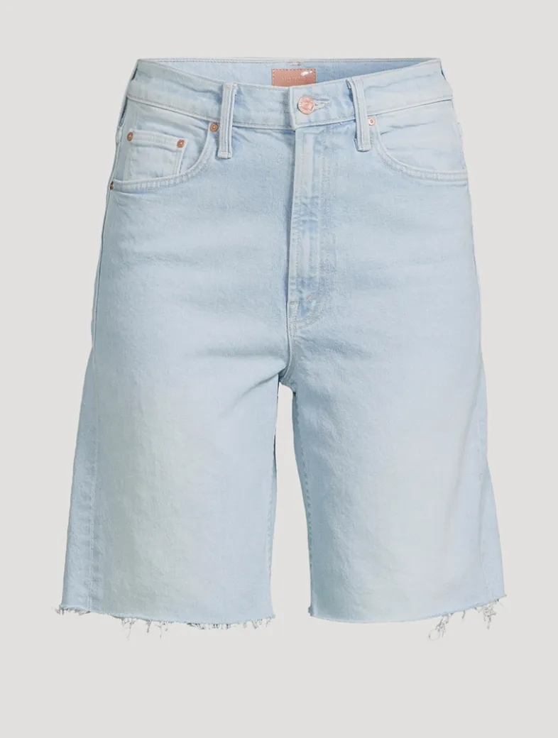 Cut to a high-rise waist, these straight-leg Bermuda shorts come with a frayed hem. Made from a semi-rigid, light wash denim with subtle fading and whiskering.