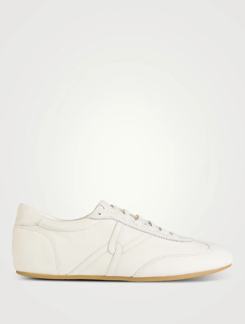Crafted from buttery leather with a panelled construction, these low-top sneakers have a laced closure and rounded toe.