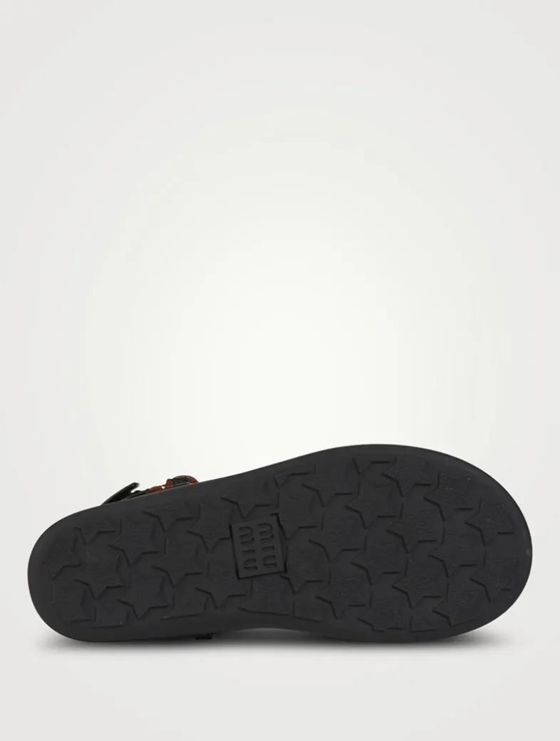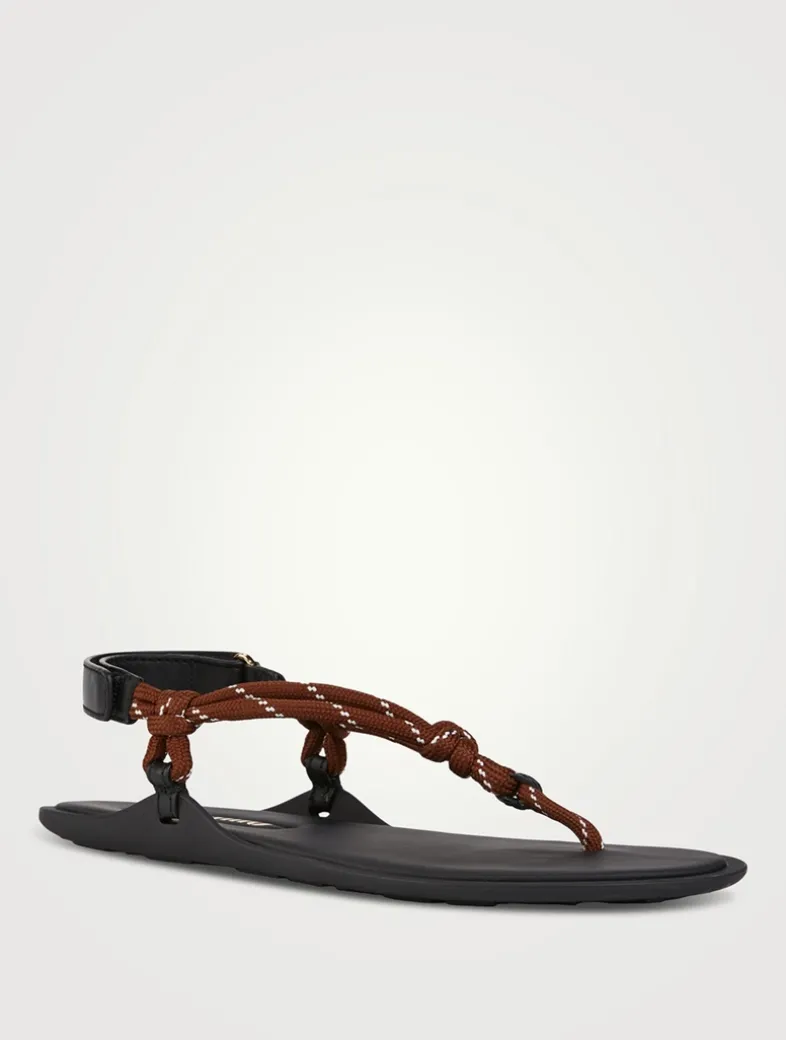 Protagonists of the SS24 fashion show, the Riviere sandals are characterized by their playful, sporty touch created by cord that unexpectedly goes with any look. The Miu Miu logo adds its signature touch to the flat shoe.