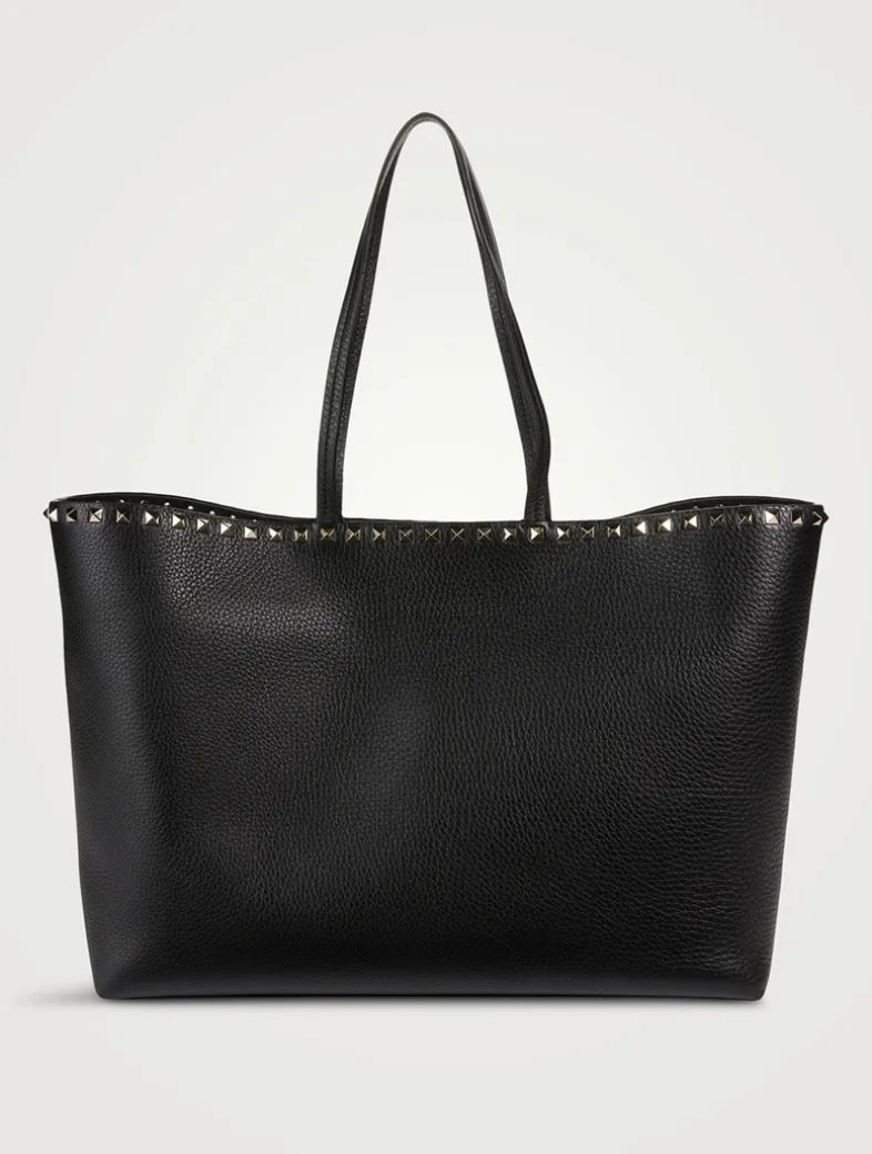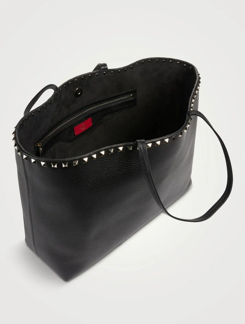 Made in Italy, this everyday shopper is crafted in grained calfskin leather. The top edge is adorned with platinum studs and the interior is designed with a zippered flat pocket and double flat open pocket. Comfortable to wear on the shoulder.