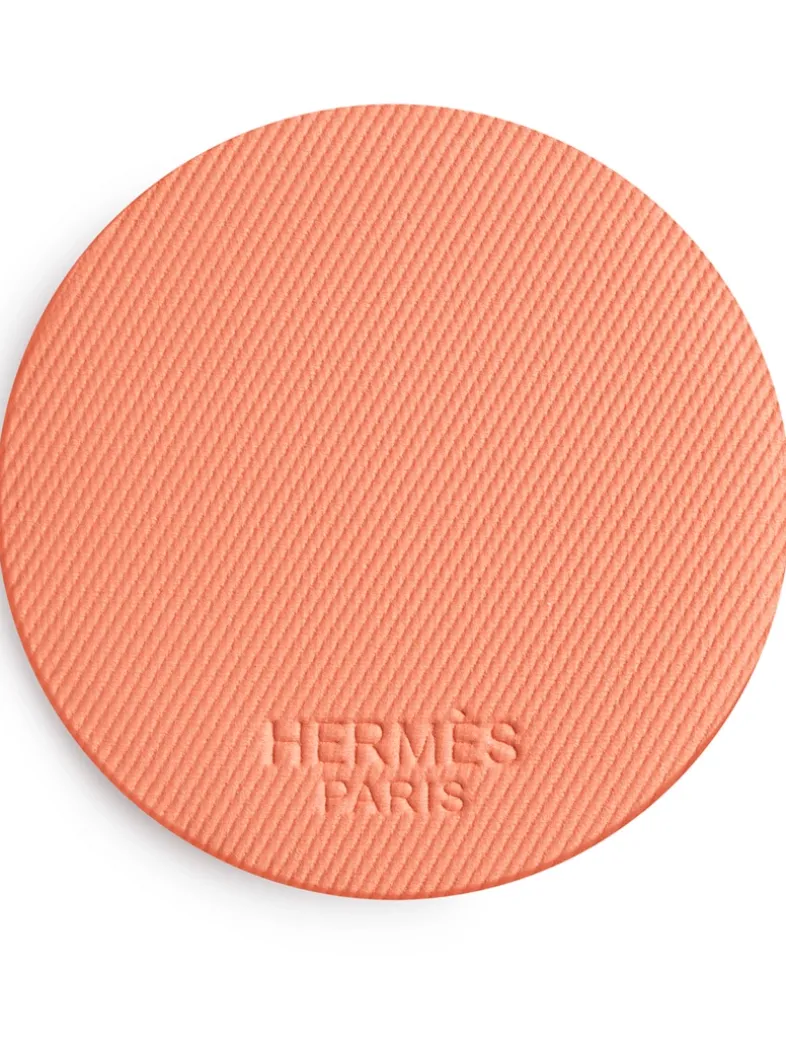 With its round case and off-centre mirror, this disc of white and gold light designed by Pierre Hardy is distinctive for its lightness, as it was conceived for use on the go. Slipped inside its orange box, this is a pure Hermès object. Rose Hermès Silky Blush can be refilled by simply removing and replacing its powder pan. Refills are sold separately.