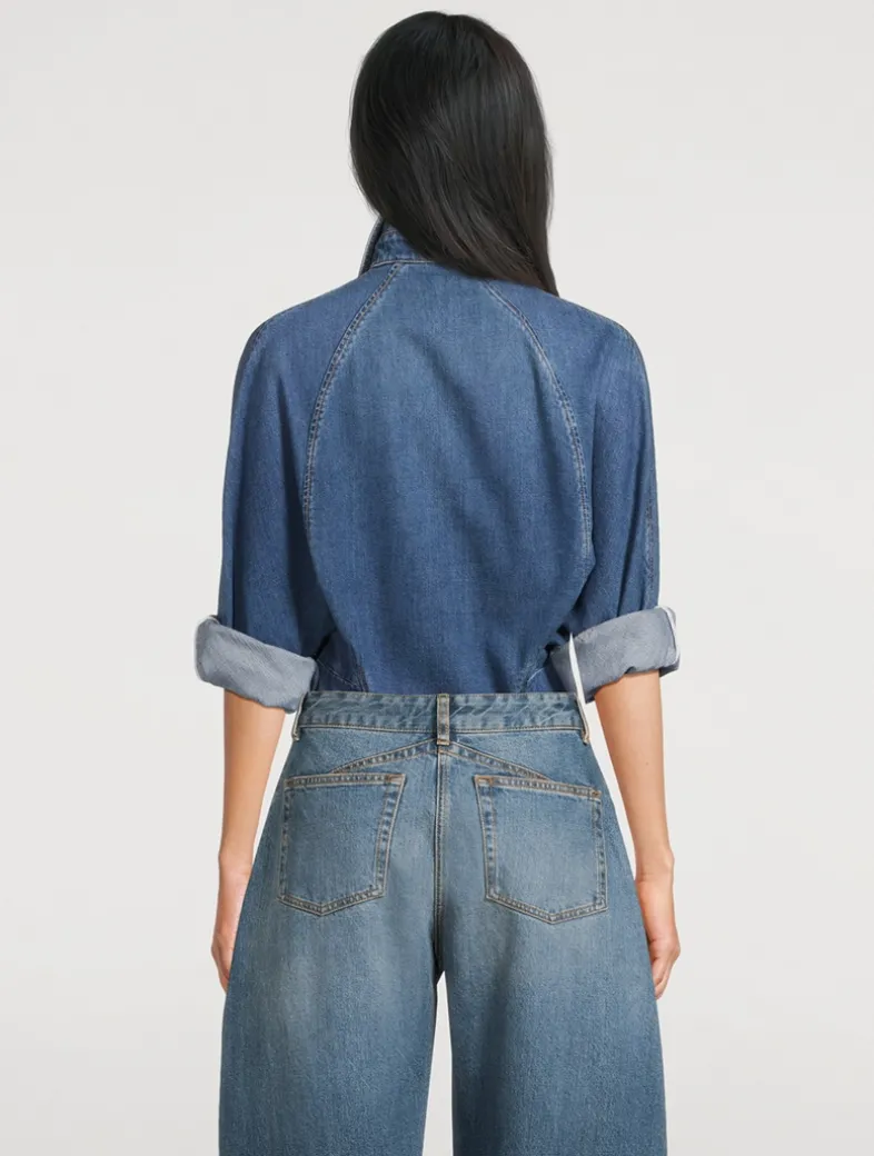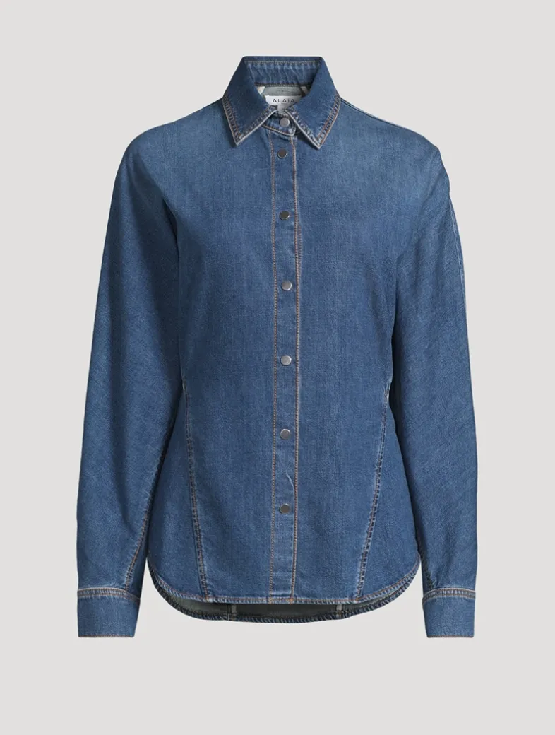 Made in Italy from rigid denim, this button-down shirt offers a modern and feminine take on a timeless style. It has a nipped-in, tapered waist highlighted with seaming.